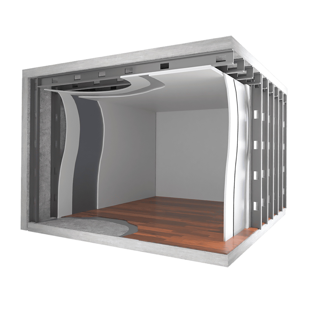 The RF shielding material has two (2) outer layers of 99% Pure Aluminum Foil with an inner layer of Fiberglass reinforcing and Kraft paper, made in the USA. RF protection increases sound attenuation and meets or exceeds minimum requirements for shielding effectiveness at 378 frequencies as tested by an accredited NSA-approved TEMPEST facility. RF Shield™ provides high-performance frequency shielding with an average RF Attenuation of 73 dB.